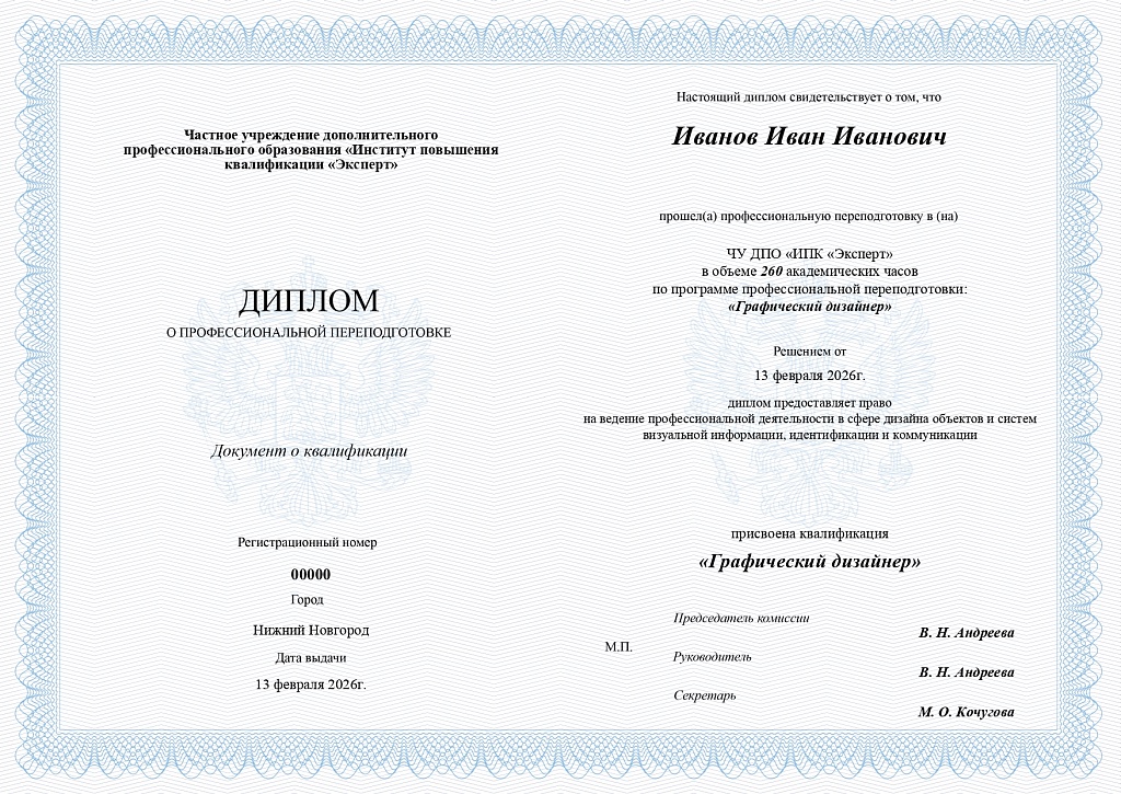 В результате профессиональной переподготовки присваивается квалификация – Графический дизайнер (уровень квалификации 6).