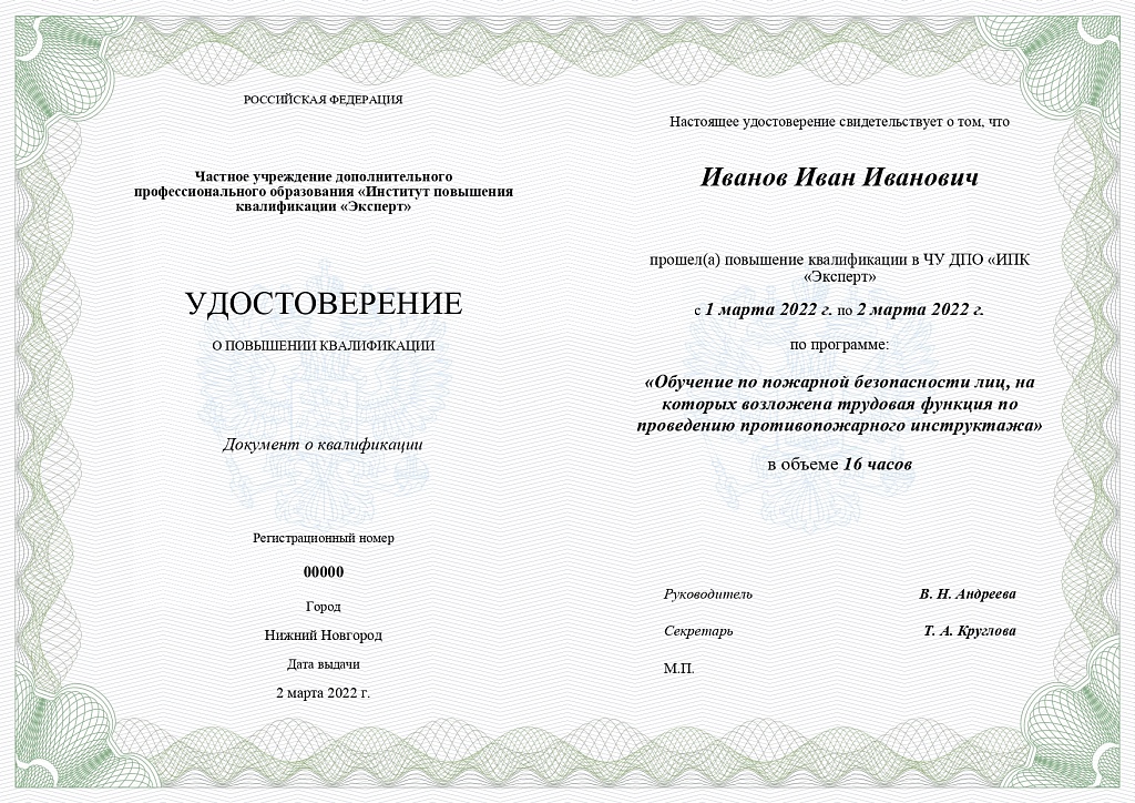 Повышение квалификации по программе «Обучение по пожарной безопасности лиц, на которых возложена трудовая функция по проведению противопожарного инструктажа» проводится для следующих категорий работников: