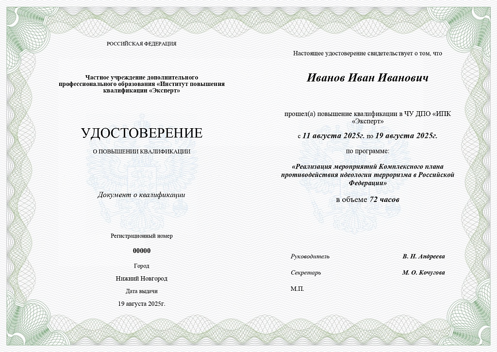 Обучение по дополнительной профессиональной образовательной программе: «Реализация мероприятий Комплексного плана противодействия идеологии терроризма в Российской Федерации» подойдет для для государственных и муниципальных служащих, ответственных за реализацию Комплексного плана в субъектах Российской Федерации.